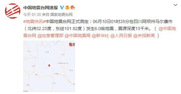 據(jù)國(guó)家地震臺(tái)網(wǎng)官方微博消息,四川阿壩州今晨發(fā)生多次地震,其中01時(shí)28分發(fā)生6.0級(jí)地震,震源深度13千米。另?yè)?jù)央視新聞客戶端消息,國(guó)務(wù)院抗震救災(zāi)指揮部辦公室、應(yīng)急管理部已啟動(dòng)國(guó)家地震應(yīng)急四級(jí)響應(yīng)。應(yīng)急管理部連夜派出工作組赴四川指導(dǎo)協(xié)助地方開(kāi)展抗震救災(zāi)工作。四川省緊急啟動(dòng)地質(zhì)災(zāi)害三級(jí)應(yīng)急響應(yīng),目前暫未收到震區(qū)及周邊區(qū)域因次生地質(zhì)災(zāi)害造成人員傷亡的報(bào)告。
