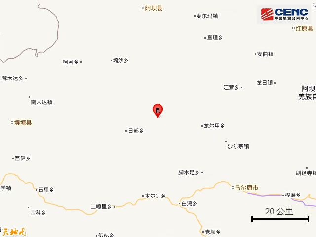 四川阿壩州馬爾康市發(fā)生3.1級(jí)地震 震源深度8千米