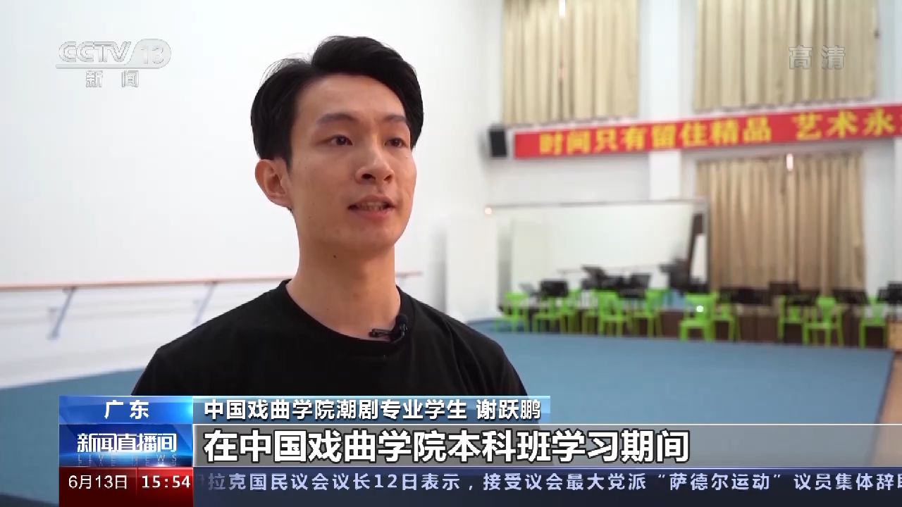 中國(guó)戲曲學(xué)院潮劇專業(yè)學(xué)生 謝躍鵬:本身我是武生行當(dāng),在中國(guó)戲曲學(xué)院本科班學(xué)習(xí)期間,我也是有意識(shí)在武戲方面下功夫,希望自己能學(xué)到更多規(guī)范性的動(dòng)作,一些高難度技巧。我還希望盡自己所能,把這些知識(shí)傳承給更多年輕人,把更多的武戲呈現(xiàn)給觀眾。