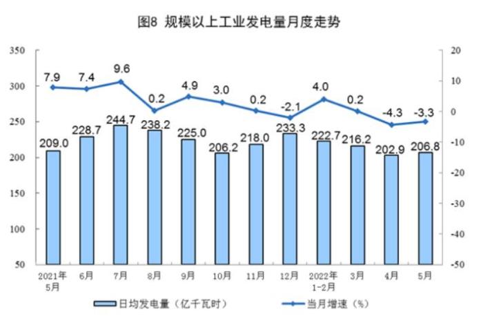 統(tǒng)計(jì)局:5月份發(fā)電6410億千瓦時 同比下降3.3%