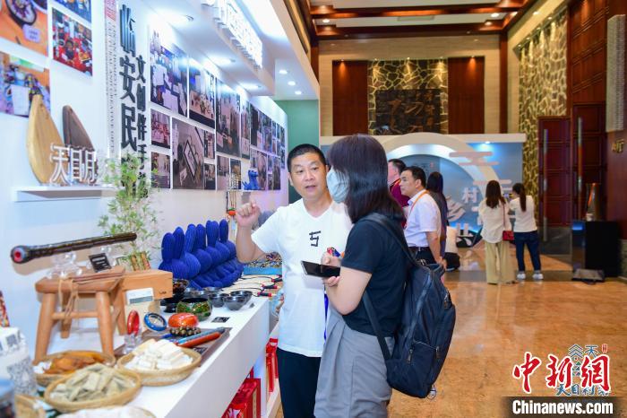 會場外擺放的臨安特色產(chǎn)品?!《艧?攝