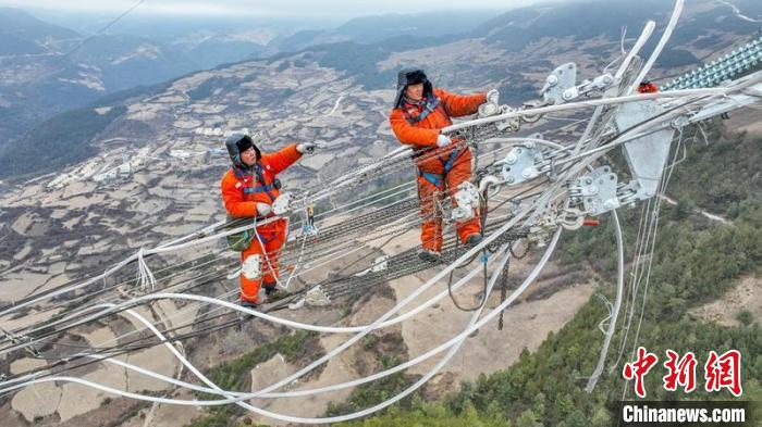 電力工人曾坤銀和熊志偉正在進(jìn)行高空作業(yè)?!”R忠東 攝