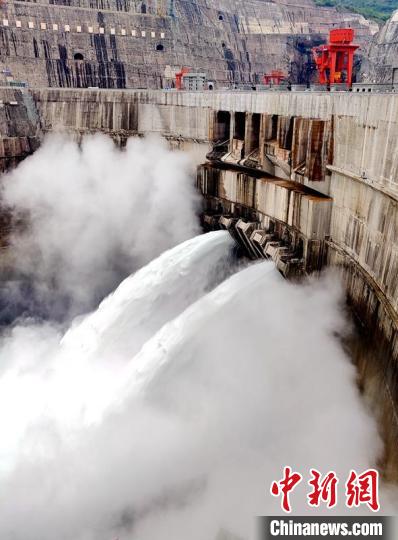 蓄水的白鶴灘水電站?!『x 攝