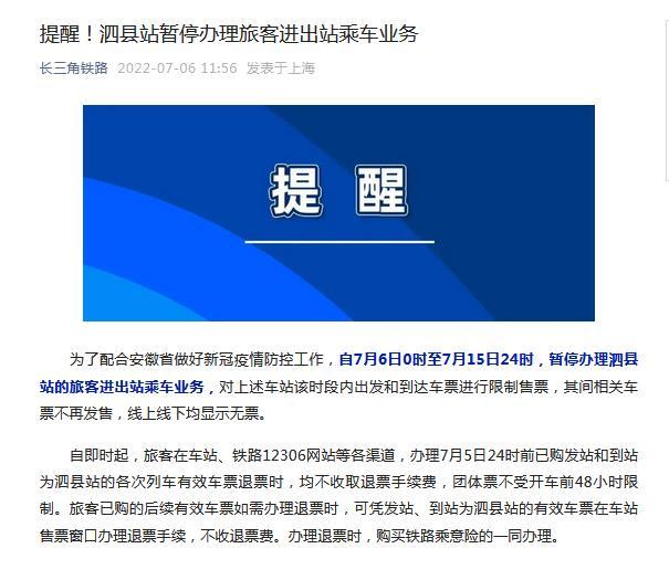 - 提醒!安徽泗縣站暫停辦理旅客進出站乘車業(yè)務