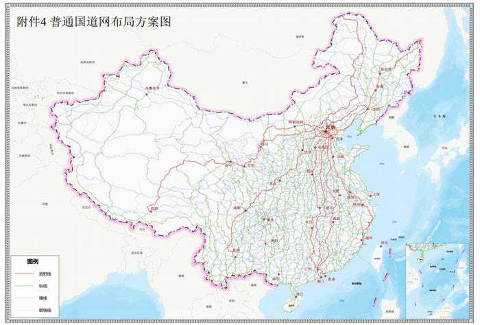 國(guó)家高速公路網(wǎng)由7條首都放射線、11條北南縱線、18條東西橫線,以及6條地區(qū)環(huán)線、12條都市圈環(huán)線、30條城市繞城環(huán)線、31條并行線、163條聯(lián)絡(luò)線組成。其中,首都放射線包括:北京—哈爾濱、北京—上海、北京—臺(tái)北、北京—港澳、北京—昆明、北京—拉薩、北京—烏魯木齊。(中新財(cái)經(jīng))