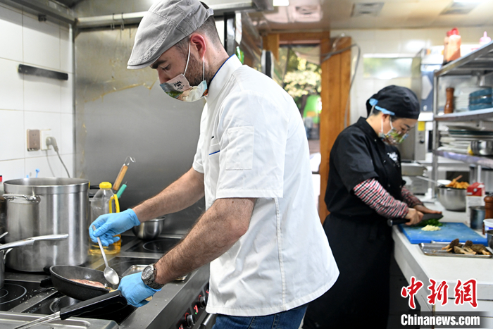 圖為6月29日,云南昆明,法國(guó)廚師文森特在廚房?jī)?nèi)忙碌。 中新社記者 李嘉嫻 攝