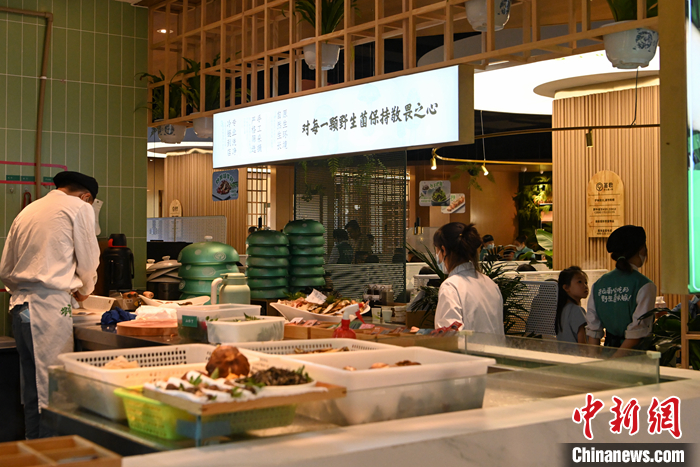圖為7月11日,云南昆明,一家野生菌火鍋店內(nèi)的工作人員在開(kāi)放式廚房?jī)?nèi)處理野生菌。 中新社記者 李嘉嫻 攝