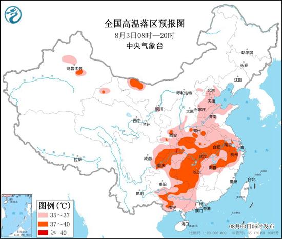 其中今天白天,北京平原地區(qū)、天津、河北、河南、山東、陜西南部、湖北、安徽、江蘇、上海、浙江、江西中北部、湖南、貴州東部和南部、重慶、四川東部、廣東西部、廣西等地有35℃以上高溫天氣,其中,河南中南部、安徽中南部、湖北、浙江中西部、江西北部、湖南、重慶、四川東部、廣西北部和西部等地部分地區(qū)最高氣溫37~39℃,重慶局地可達(dá)40℃以上。中央氣象臺今早繼續(xù)發(fā)布高溫黃色預(yù)警。