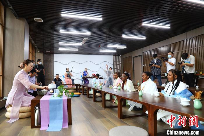 留學(xué)生還更換漢服、唐裝,跟隨老師學(xué)習(xí)茶藝,并品嘗了自己親手泡制的泰山女兒茶。在品茶之余,大家又一起體驗(yàn)了中國古典樂器之美,一曲享譽(yù)海內(nèi)外的中國民歌《茉莉花》,讓在場(chǎng)的留學(xué)生一起跟著哼唱,體悟中國傳統(tǒng)文化的魅力。
