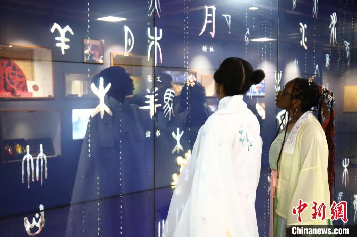 外國留學(xué)生通過觸摸電子屏幕體驗(yàn)學(xué)習(xí)漢字文化、了解漢字的演變歷程?!∷逑?攝