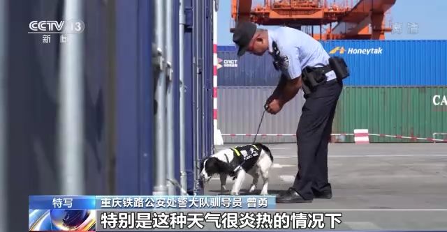 重慶鐵路公安處警犬隊(duì)馴導(dǎo)員 陳城:咱們警犬它散熱的方式就是通過舌頭,但是它工作的時候又要閉著嘴,用鼻子來呼吸、工作。天氣又太熱,它自身也非常難受,其實(shí)它內(nèi)心是非常煎熬的,但是咱們的警犬都非常棒,執(zhí)行命令也非常強(qiáng)。