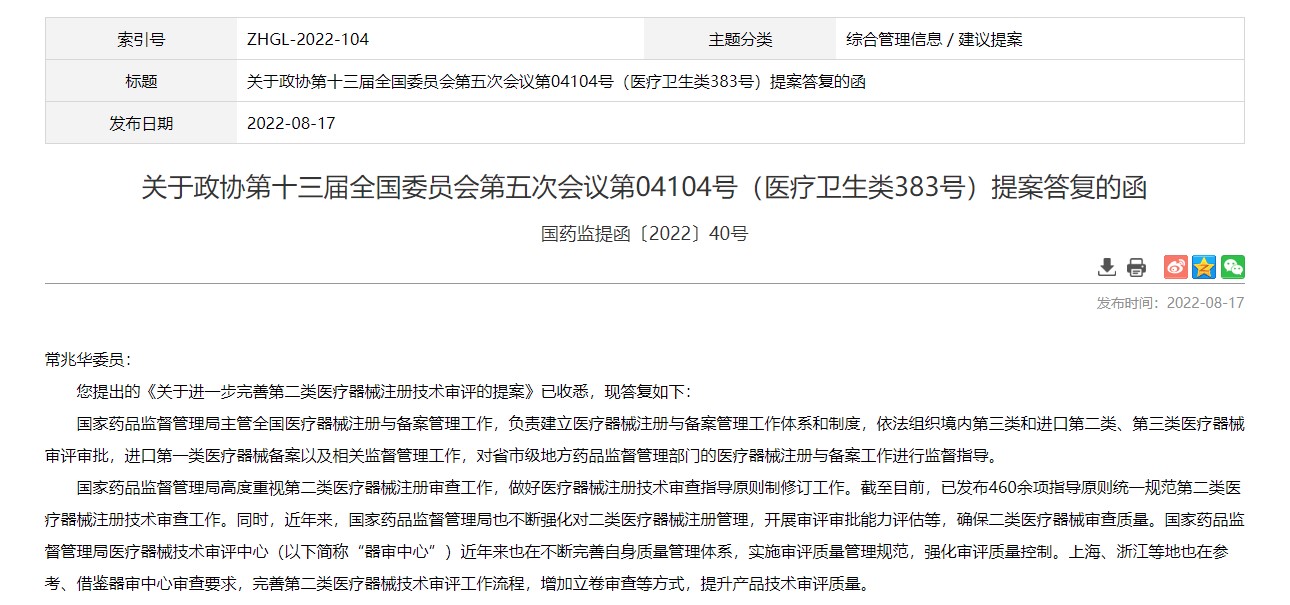 國家藥監(jiān)局:繼續(xù)加強(qiáng)對第二類醫(yī)療器械注冊的指導(dǎo)