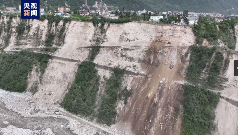 項目部工作人員向記者表示,通過無人機航拍可以看到,塌方路段最嚴重的地方大概有2.5公里長,塌方量達到10萬方左右,約15米高,一不小心就有翻下山的危險。由于地形陡峭,目前只有2臺挖機能參與作業(yè),而道路右側(cè)邊坡還在不??逅椖坎空朔щy,全力搶通這條通往海螺溝景區(qū)的生命通道。