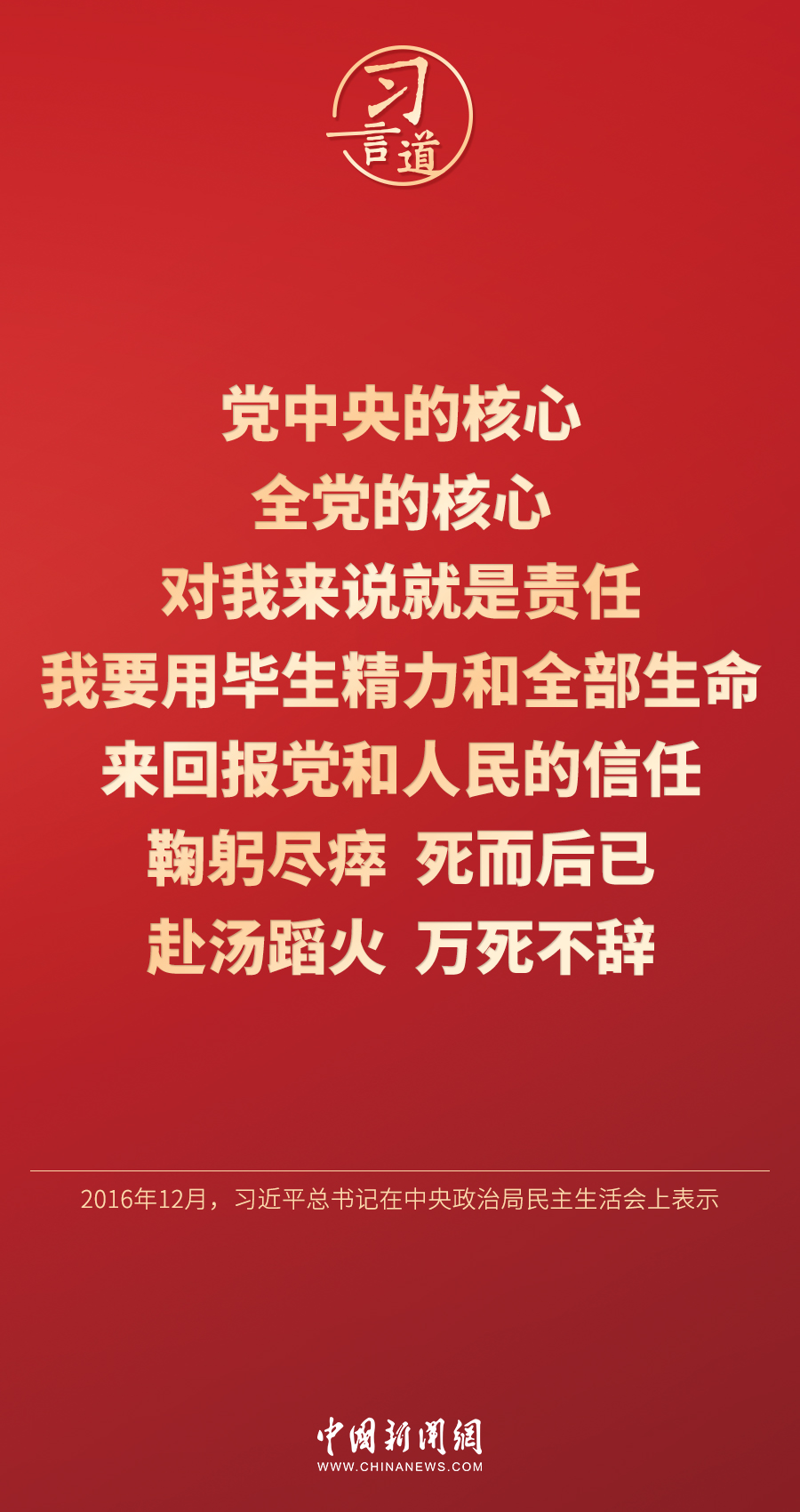 習(xí)言道|“黨中央的核心、全黨的核心,對我來說就是責任”