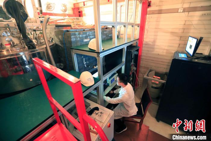 中國(guó)錦屏地下實(shí)驗(yàn)室內(nèi),科研助理景明坤正在對(duì)樣本進(jìn)行輻射檢測(cè)。 王磊 攝
