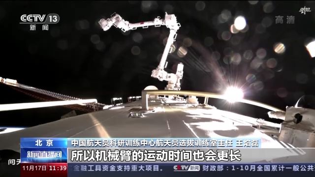 中國(guó)航天員科研訓(xùn)練中心航天員選拔訓(xùn)練室主任 王焰磊:我們首次使用兩個(gè)機(jī)械臂,就是大臂小臂形成組合臂的狀態(tài)下支持出艙活動(dòng)任務(wù)。因?yàn)榇蠹铱梢韵胂笠幌?,單臂的長(zhǎng)度已經(jīng)很長(zhǎng)了,那么兩個(gè)臂組合以后長(zhǎng)度更長(zhǎng),它的柔性、剛性等和我們單臂狀態(tài)下是有一些區(qū)別的。在這種情況下載人去支持完成出艙任務(wù),也是我們做首次的一個(gè)驗(yàn)證。