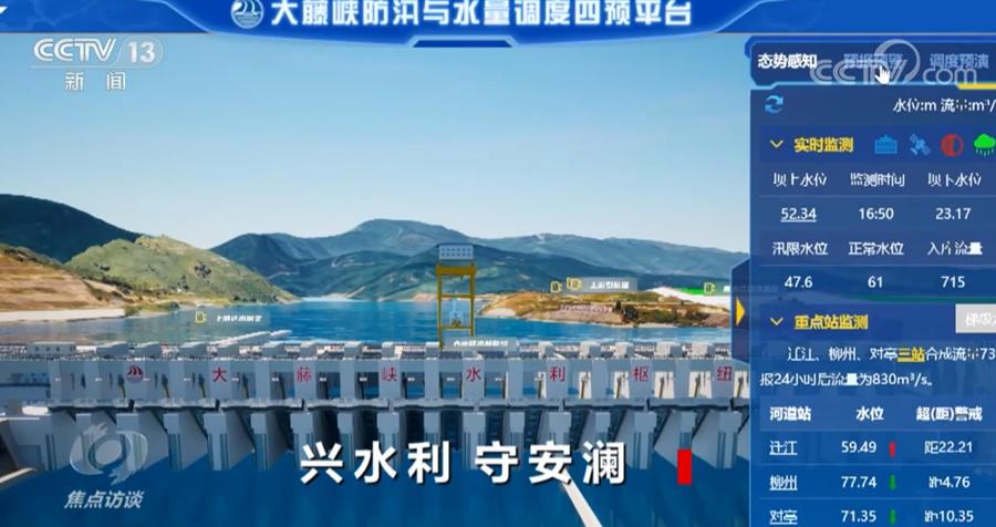 大藤峽工程樞紐管理中心副主任趙光輝:“我們對(duì)西江4次編號(hào)洪水做了5次預(yù)演,根據(jù)未來(lái)7天的降雨量預(yù)測(cè),統(tǒng)籌分析下游會(huì)淹沒(méi)桂平、藤縣、梧州哪些區(qū)域,分析了3種不同調(diào)度方案的利弊,攔蓄洪峰量達(dá)到了7億立方米,將西江梧州站洪峰出現(xiàn)時(shí)間推遲一天,同時(shí)也避免了西江、北江的洪峰遭遇。”
