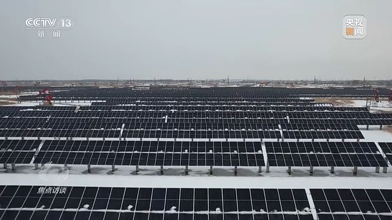 可是資源總有耗盡的那一天,該怎么辦呢?寒潮持續(xù)影響著松遼平原,記者來到大慶油田的第三天,氣溫已經(jīng)降到零下21℃,還伴隨著5級風(fēng)。大慶是一個百湖之城,有很多的泡澤,記者看到,在封凍的水泡子上,已經(jīng)建設(shè)了一批水面光伏。