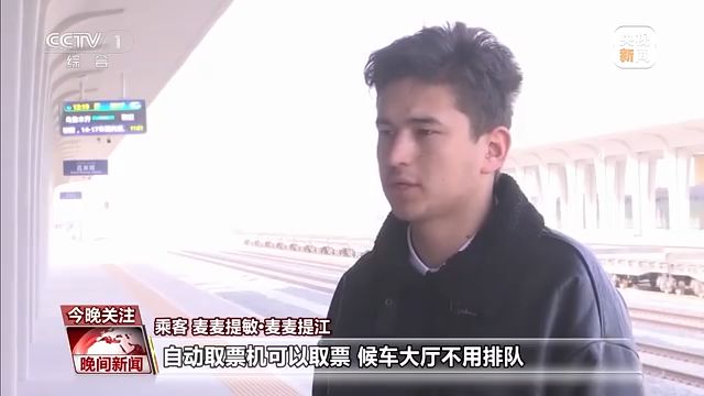乘客 麥麥提敏 麥麥提江:之前我們來和田都是開車、坐汽車。時(shí)間很長很累,現(xiàn)在火車通了之后,給我們帶來很多方便,自動(dòng)取票機(jī)可以取票,候車大廳不用排隊(duì)。
