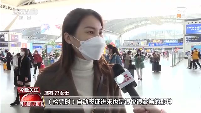 旅客 馮女士:現(xiàn)在方便了很多,檢票時(shí)自動(dòng)簽證進(jìn)來也是很快很流暢的那種,直接拿身份證刷一下就馬上進(jìn)來了,以前還要排很長的隊(duì)現(xiàn)在不用了,很方便。