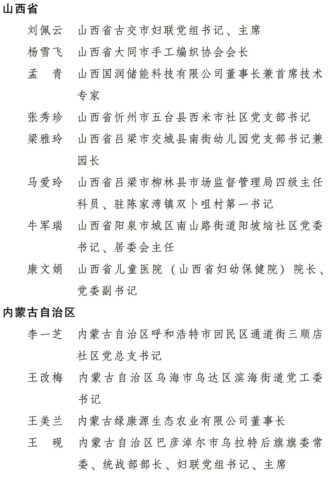 全國(guó)三八紅旗手標(biāo)兵名單