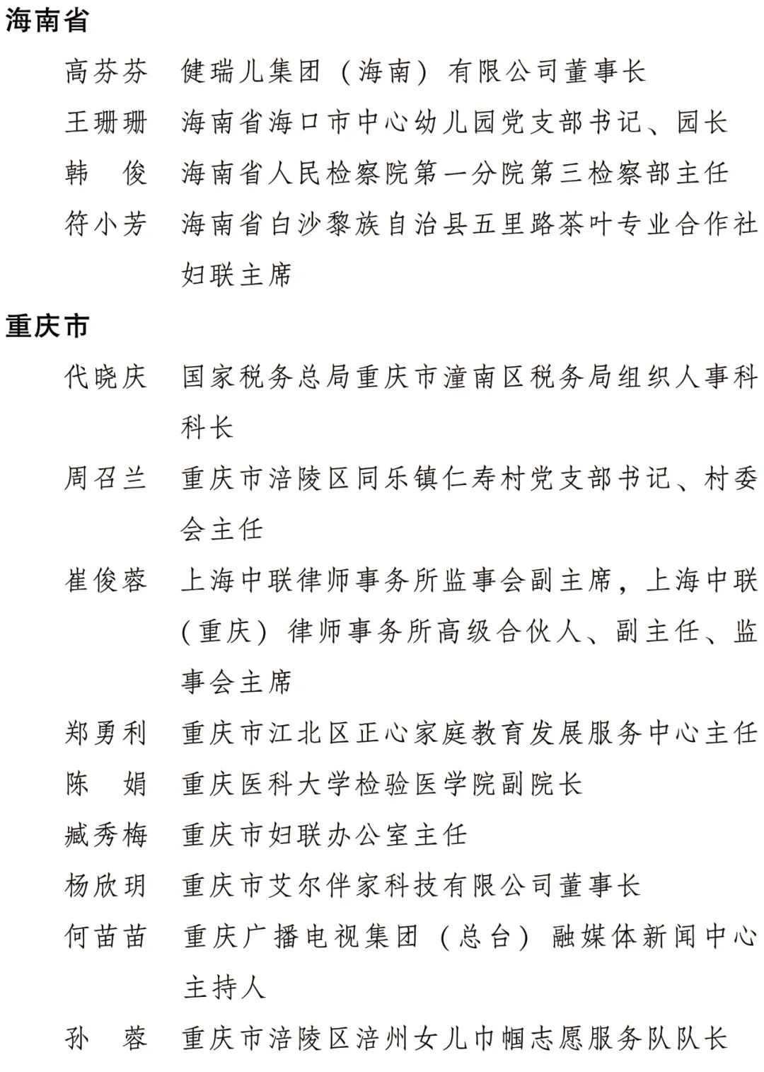 全國(guó)三八紅旗手名單
