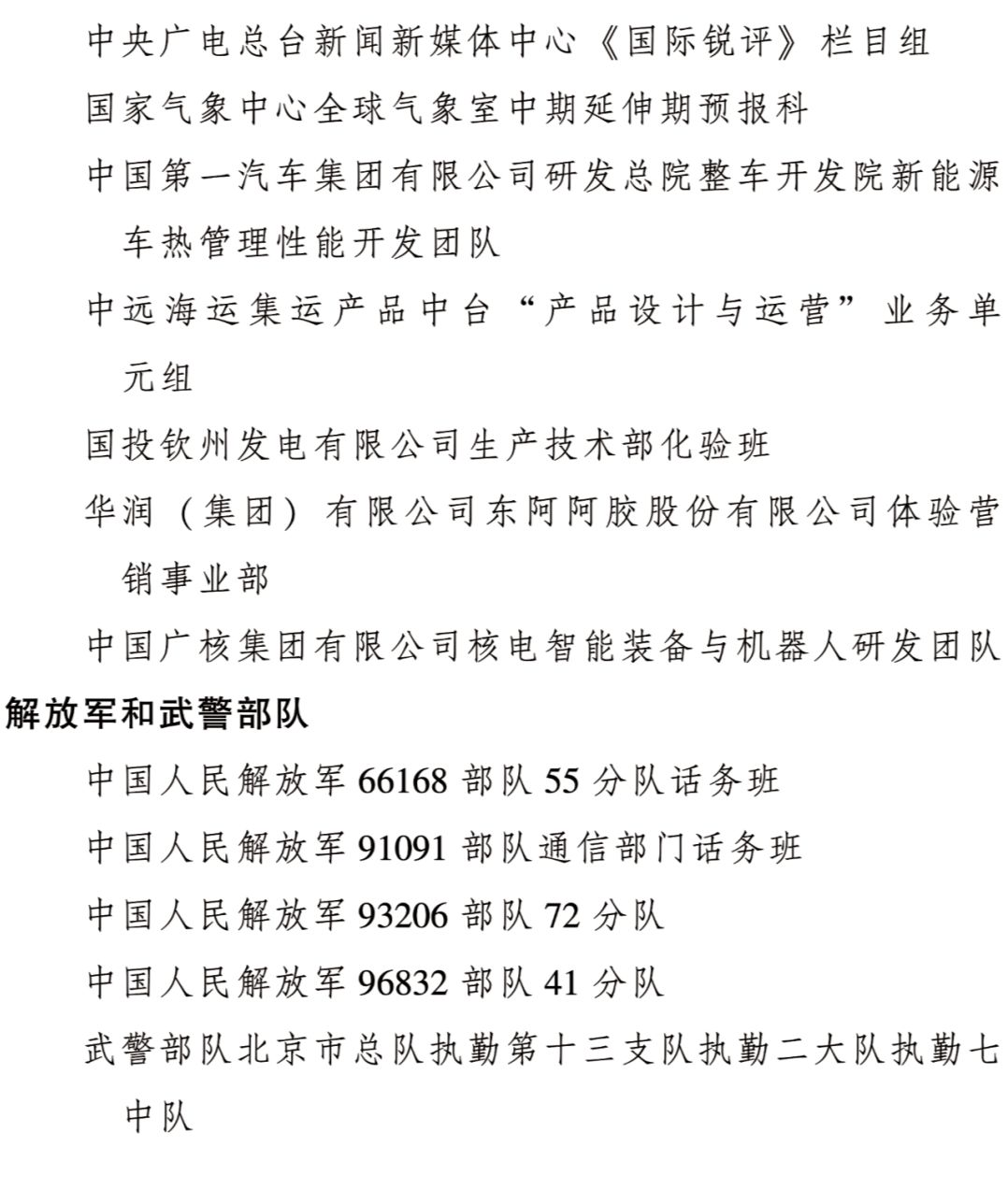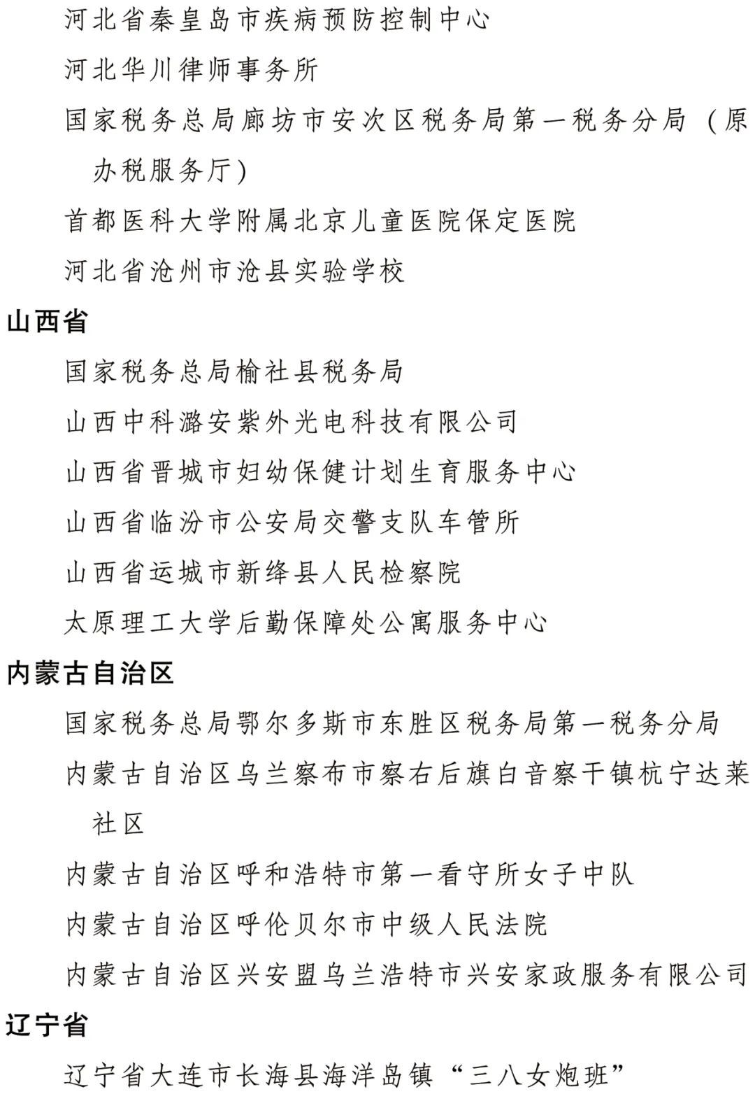 全國(guó)三八紅旗集體名單