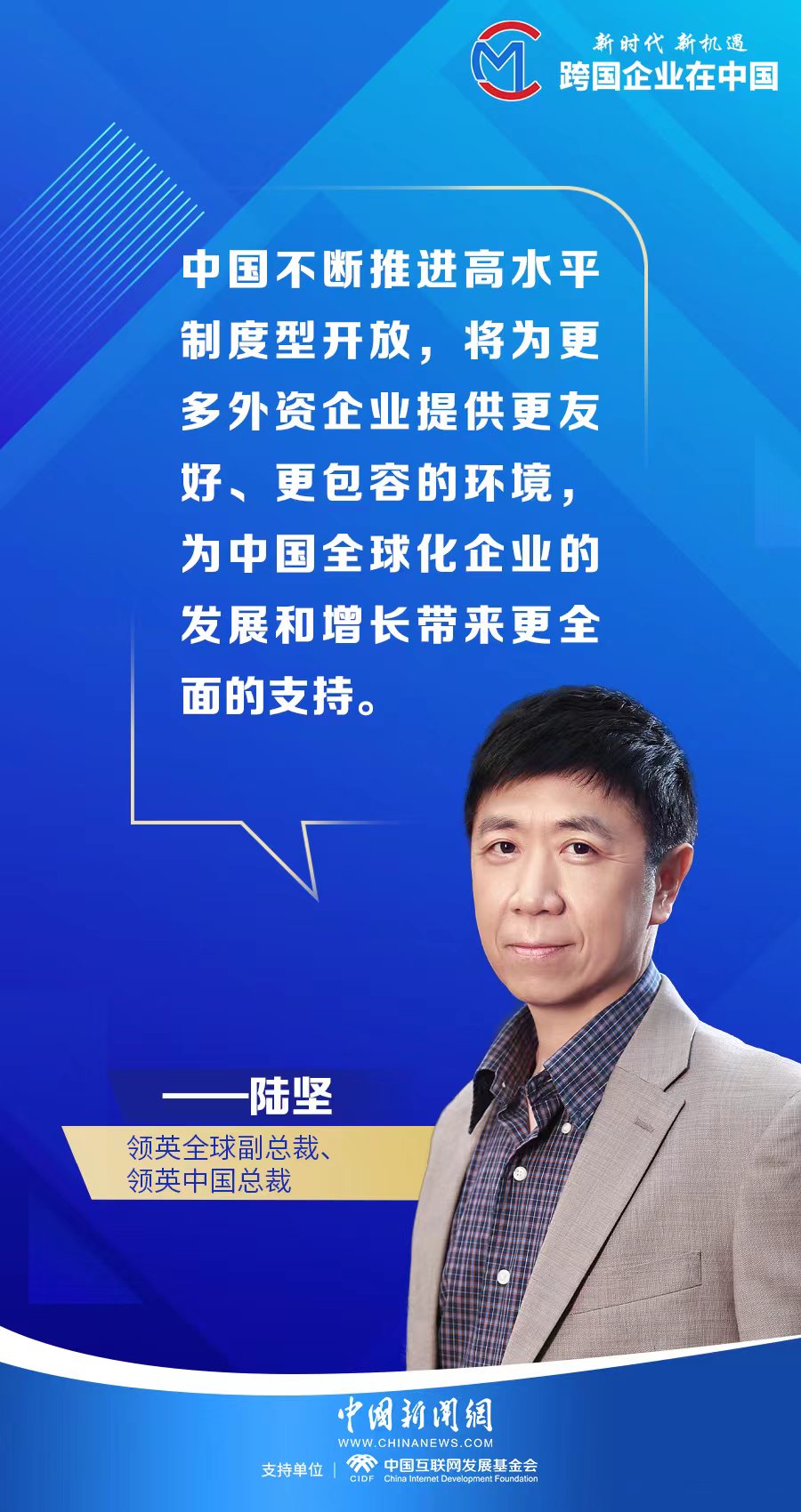 “中國(guó)不斷推進(jìn)更高水平制度型開放,將為以領(lǐng)英為代表的更多外資企業(yè)提供更友好、更包容的環(huán)境,為中國(guó)全球化企業(yè)的發(fā)展和增長(zhǎng)帶來更全面的支持,包括更廣的全球視野共享、更優(yōu)的全球資源協(xié)調(diào),以及更多的全球機(jī)會(huì)連接?!标憟?jiān)稱。