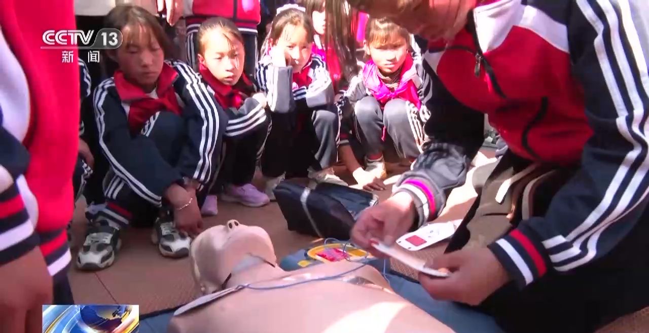 在云南省昭通市魯?shù)榭h鵲落小學(xué),一場“紅氣球校園挑戰(zhàn)賽”將趣味運動會和急救知識答題與實際操作相結(jié)合。操場上,同學(xué)們在緊張有趣的比賽中不僅得到了運動鍛煉,還在紅十字會專業(yè)救護人員的指導(dǎo)下,體驗海姆立克急救法、心肺復(fù)蘇以及AED(自動體外除顫儀)的使用方法,學(xué)習(xí)創(chuàng)傷包扎等急救知識和技能。