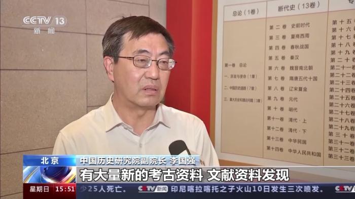 中國歷史研究院副院長 李國強(qiáng):那么距離今天我們前一部通史已經(jīng)過去20多年,在20多年的時間里邊,有大量新的考古資料、文獻(xiàn)資料發(fā)現(xiàn),那么需要以新的史料、新的理論、新的方法來觀察中國歷史。《(新編)中國通史》跨時代跨度非常長,一直從史前時期,寫到黨的二十大,這樣一個時間跨度,在過去的通史編纂當(dāng)中是前所未有的。同時我們《(新編)中國通史》也采取了斷代史與專門史相結(jié)合的這樣一個全新體例,這在以往也是前所未有的。