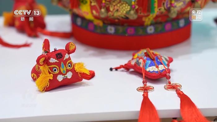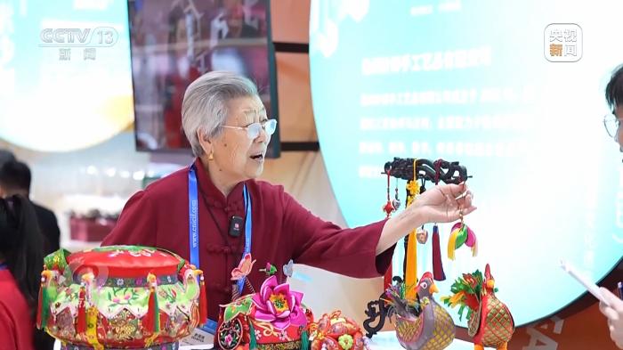 在江蘇展區(qū),一位正在做針線活的白發(fā)老人引人注目,她是江蘇省級非遺項目傳承人王秀英。王奶奶做的徐州香包名字叫做針棒,有著豐厚的文化蘊涵和文化價值,入選第一批國家級非物質(zhì)文化遺產(chǎn)擴展項目名錄。這次和王奶奶一同來參展的還有她的孫女孫歌堯。在學習傳統(tǒng)工藝的同時,孫歌堯大膽創(chuàng)新,嘗試融入更多技法和材質(zhì)。