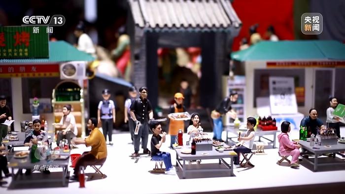 要說本次文博會最吸引人的展位,淄博燒烤算一個??墒?,燒烤怎么進了文博會?原來,這是一個2.8米長的軟陶泥塑微縮景觀,生動還原了淄博燒烤的現(xiàn)實場景。此外,展臺上的琉璃燒烤大餐也吸引了不少人拍照打卡。當然,現(xiàn)場還是有可以吃的美食——大名鼎鼎的山東煎餅。
