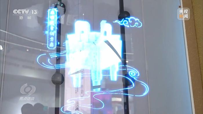 在AI繪畫一旁,國家級保護文物司母戊大方鼎、青銅縱目面具、四羊方尊、越王勾踐劍、曾侯乙編鐘等正以數(shù)字化形式呈現(xiàn)在觀眾面前。參展商通過數(shù)字孿生技術(shù)復現(xiàn)或重構(gòu)文物和文化遺產(chǎn)的數(shù)字鏡像,從而實現(xiàn)文物和文化遺產(chǎn)的保護、修復直至永久性保存和活態(tài)化傳承。觀眾既可以看到部分真實的復制文物和文化遺產(chǎn),又可以體驗虛擬的數(shù)字文物和文化遺產(chǎn),虛實之間,體會數(shù)字化給傳統(tǒng)文物和文化遺產(chǎn)帶來的生命力。