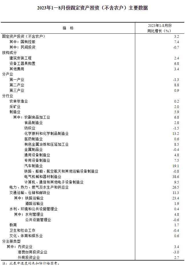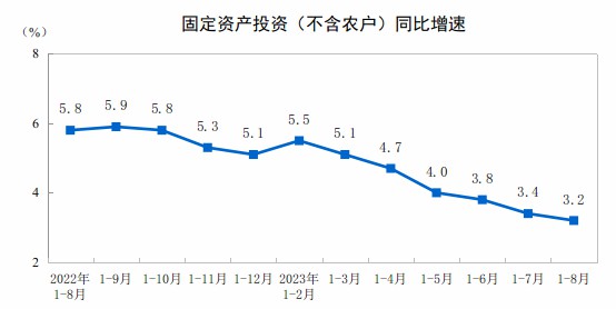 國(guó)家統(tǒng)計(jì)局:2023年1—8月份全國(guó)固定資產(chǎn)投資增長(zhǎng)3.2%