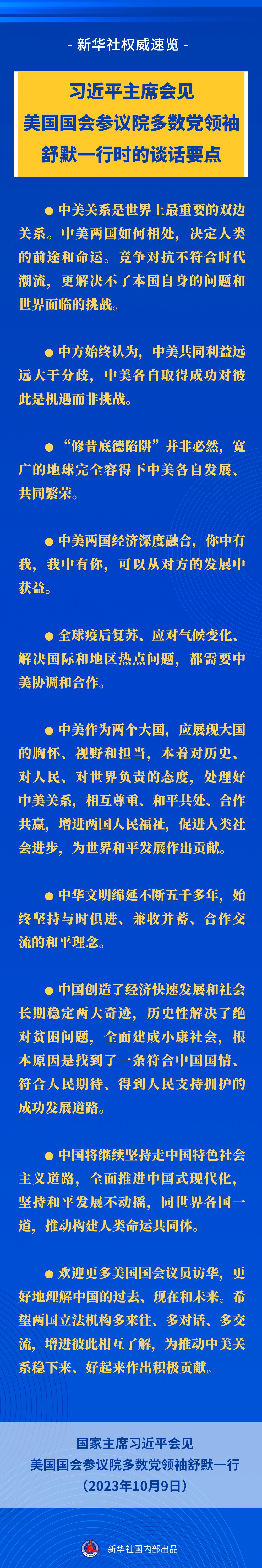 新華社權(quán)威速覽丨習(xí)近平主席會(huì)見(jiàn)美國(guó)國(guó)會(huì)參議院多數(shù)黨領(lǐng)袖舒默一行時(shí)的談話要點(diǎn)