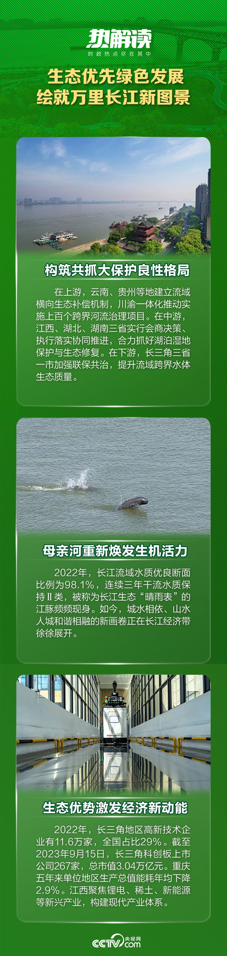 從“共抓大保護(hù)、不搞大開發(fā)”,到承擔(dān)起“主戰(zhàn)場、主動脈、主力軍”的新歷史使命,生態(tài)優(yōu)先、綠色發(fā)展的理念已在長江經(jīng)濟(jì)帶沿線各省市落地生根。