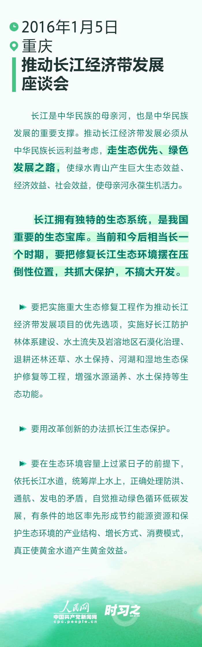 黨的十八大以來,習近平總書記先后四次主持召開座談會,強調(diào)“堅持共抓大保護、不搞大開發(fā),堅持生態(tài)優(yōu)先、綠色發(fā)展”作為重中之重,為推動長江經(jīng)濟帶高質量發(fā)展謀篇布局。