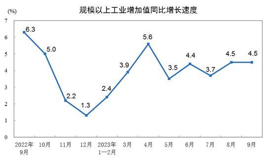 國家統(tǒng)計局:9月份規(guī)模以上工業(yè)增加值增長4.5%