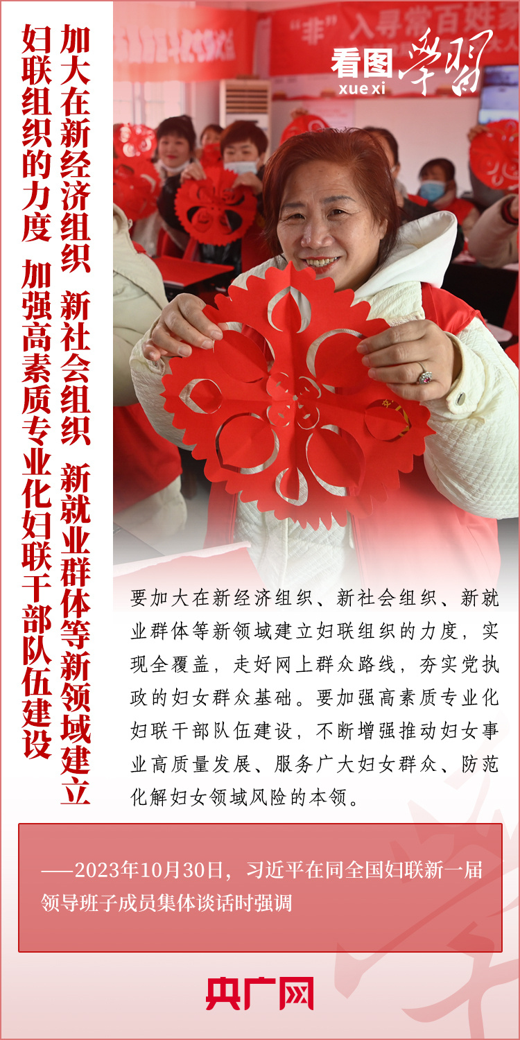 10月30日下午,習近平總書記同全國婦聯(lián)新一屆領(lǐng)導(dǎo)班子成員集體談話并發(fā)表重要講話??倳洀娬{(diào),要堅定不移走中國特色社會主義婦女發(fā)展道路,激勵廣大婦女自尊自信、自立自強,奮進新征程、建功新時代,為中國式現(xiàn)代化建設(shè)貢獻巾幗智慧和力量。一起來學習!