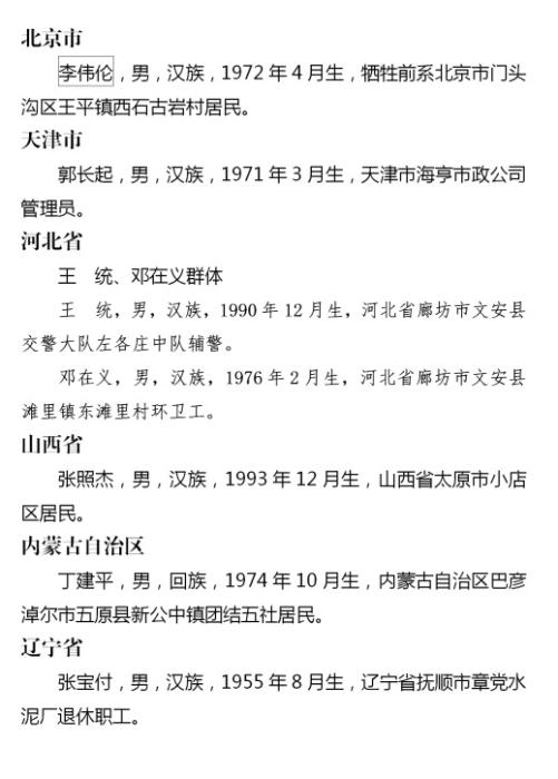 上榜勇士中有勇斗持刀犯罪嫌疑人身負(fù)重傷的張照杰、姚玉龍、王沖、王永芳;有從高橋跳水救人的周中磊、曾文文、周海;有從隨時可能爆炸的事故車輛中救出司機(jī)母子的湯益鑫;有冒著煤氣罐爆炸危險制服劫持孩子歹徒的蔡國榮;有救援被困電梯內(nèi)同事而導(dǎo)致左小腿截肢的翟元敏;有休假期間水下連續(xù)救人的現(xiàn)役軍人柯東賢、吳金學(xué)、趙錦雄;更有見義勇為英勇犧牲的李偉倫、張嘉俊、張可可、李峰武、安西德、何同猛、曾維龍、胡喜明、李振華、東周才仁、賽西陳文11位同志。勇士們見義勇為事跡鼓舞人心、振奮精神、催人奮進(jìn)。他們用血汗甚至生命秉承、詮釋了中華民族傳統(tǒng)美德,用奮不顧身的實(shí)際行動踐行了社會主義核心價值觀。