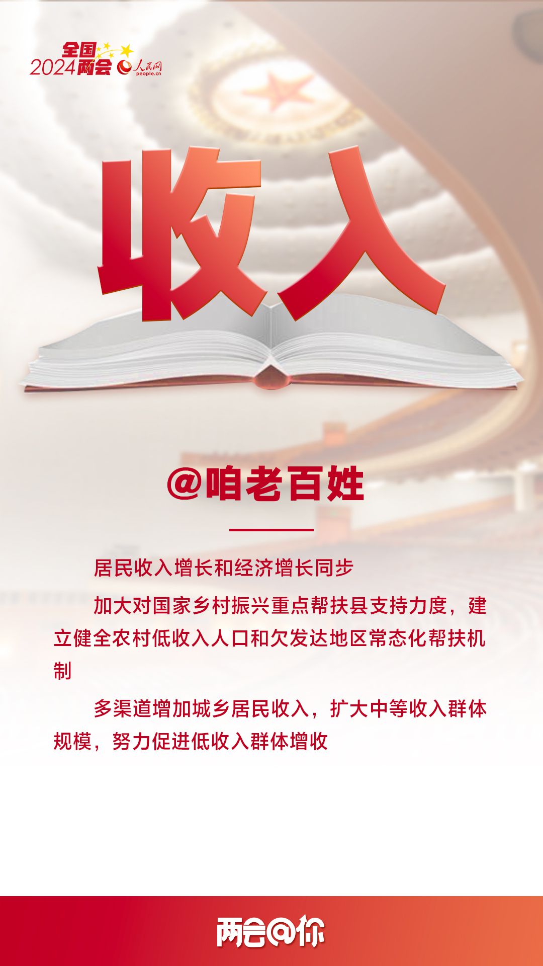 編者按:3月5日,十四屆全國人大二次會議開幕,國務(wù)院總理李強(qiáng)代表國務(wù)院向大會作政府工作報(bào)告,提出2024年經(jīng)濟(jì)社會發(fā)展總體要求和政策取向。即日起,人民網(wǎng)推出“兩會@你”系列報(bào)道,聚焦與百姓生活息息相關(guān)的熱點(diǎn)議題,梳理解讀全國兩會上的重要民生看點(diǎn),以饗讀者。