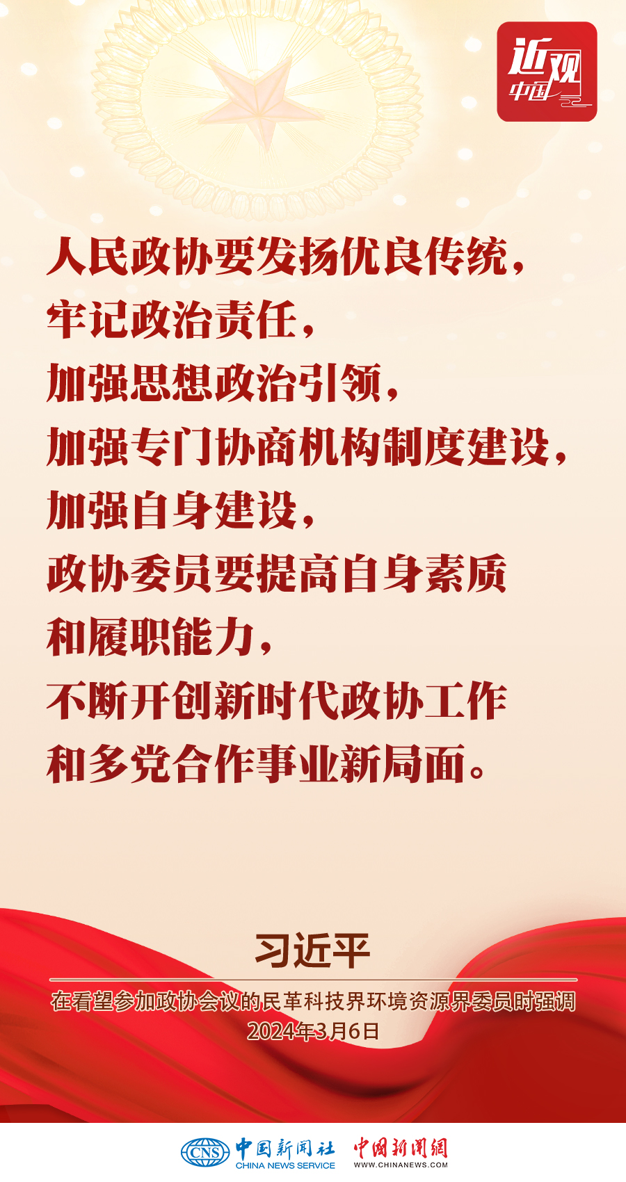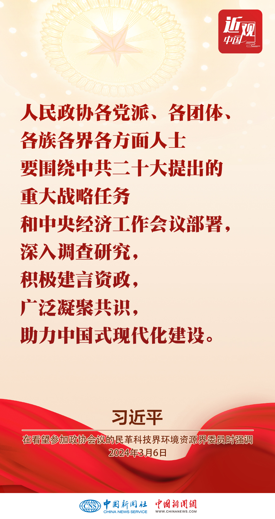 3月6日,中共中央總書記、國家主席、中央軍委主席習(xí)近平看望參加全國政協(xié)十四屆二次會(huì)議的民革、科技界、環(huán)境資源界委員,并參加聯(lián)組會(huì),聽取意見和建議。他強(qiáng)調(diào)——