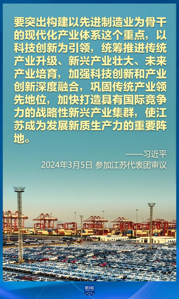 5日下午,習(xí)近平在參加他所在的十四屆全國人大二次會議江蘇代表團審議時強調(diào),因地制宜發(fā)展新質(zhì)生產(chǎn)力。