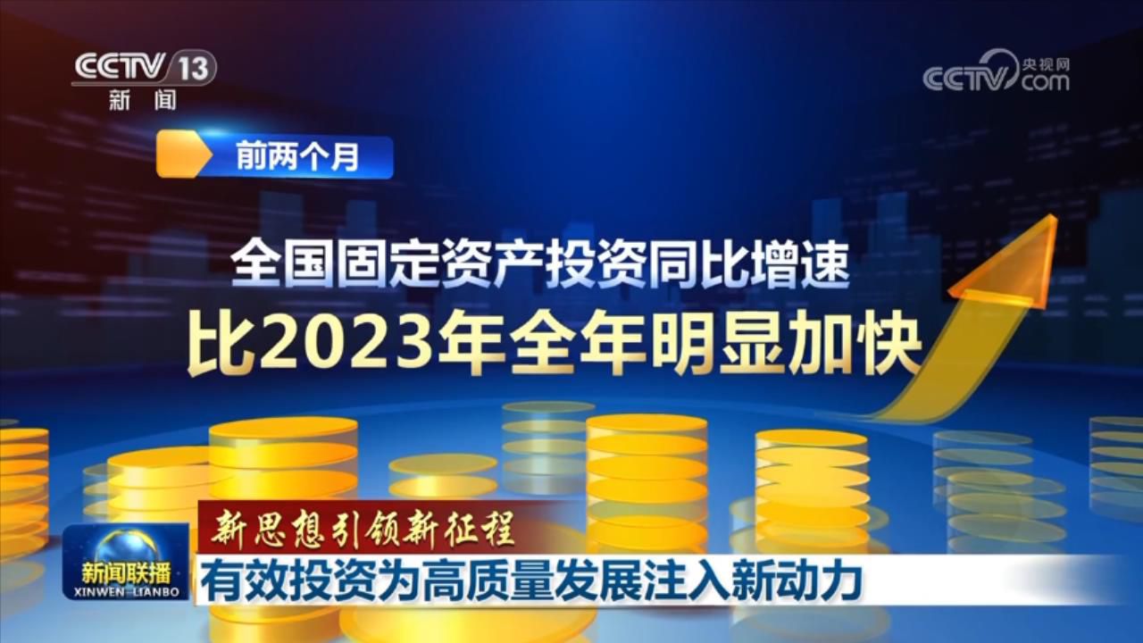 央視網(wǎng)消息(新聞聯(lián)播):習近平總書記強調,要完善擴大投資機制,拓展有效投資空間。今年開年以來,服務高質量發(fā)展成為擴大有效投資的重要著力點,投資規(guī)模持續(xù)增長,投資結構質量持續(xù)提升,助力中國經(jīng)濟實現(xiàn)平穩(wěn)開局。