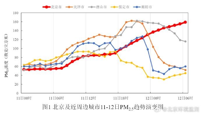 顯著不利氣象條件造成京津冀區(qū)域污染水平快速上升,形成區(qū)域性污染,11日白天北京近周邊石家莊、保定、天津等城市PM2.5快速上升,以3-4級(jí)輕中度污染水平為主,部分站點(diǎn)達(dá)到4-5級(jí)中重度污染;入夜后近周邊城市PM2.5污染顯著加重,天津唐山等城市達(dá)到5級(jí)重度污染水平,北京PM2.5濃度持續(xù)上升,尤其是11日夜間 PM2.5快速上升,12日凌晨至上午達(dá)到4-5級(jí)中重度污染水平。