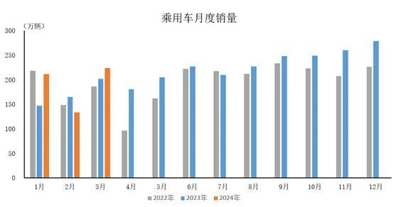 2024年3月,乘用車(chē)產(chǎn)銷(xiāo)分別完成225萬(wàn)輛和223.6萬(wàn)輛,環(huán)比分別增長(zhǎng)76.7%和67.8%,同比分別增長(zhǎng)4.7%和10.9%。