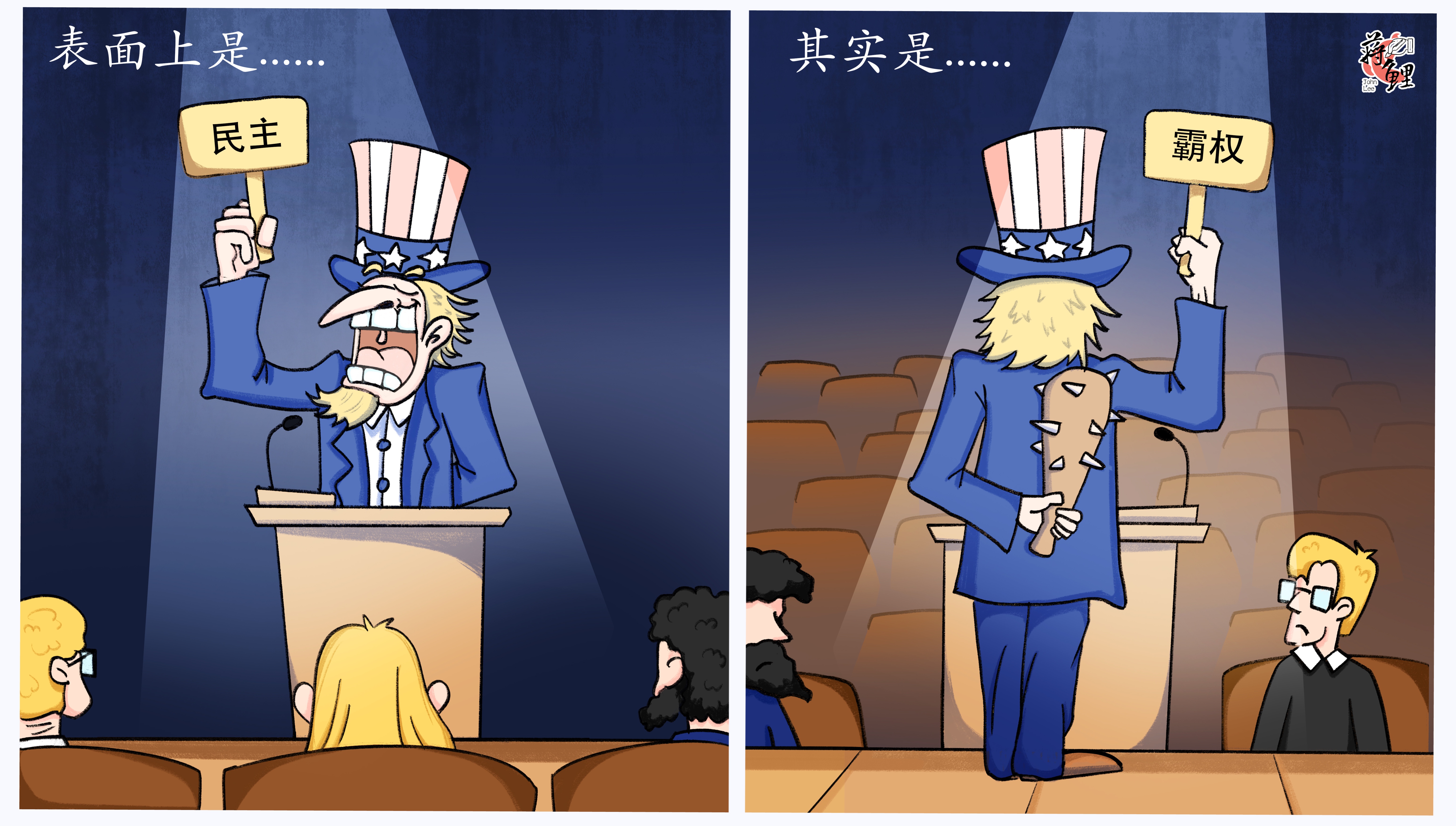 美國自身在民主人權(quán)領(lǐng)域臭名昭著,沒有資格充當(dāng)民主人權(quán)的“教師爺”。美方舉辦所謂“民主峰會”是以“民主”為幌子、以霸權(quán)為里子,維護(hù)民主是假,鞏固霸權(quán)是真。如果真要話民主之“道”,相互尊重、開放包容、合作共贏才是正道。(蔣鯉)