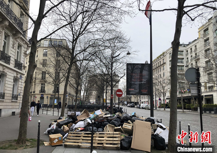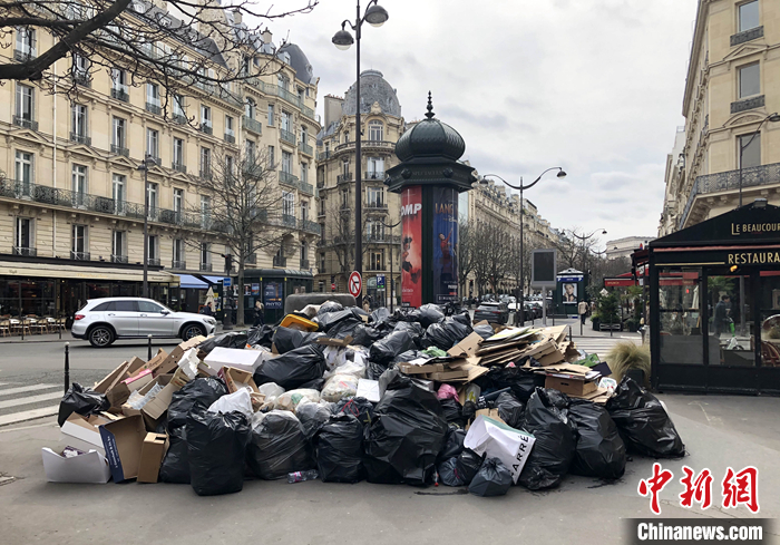 圖為巴黎市中心無人清理的垃圾。 中新社記者 李洋 攝