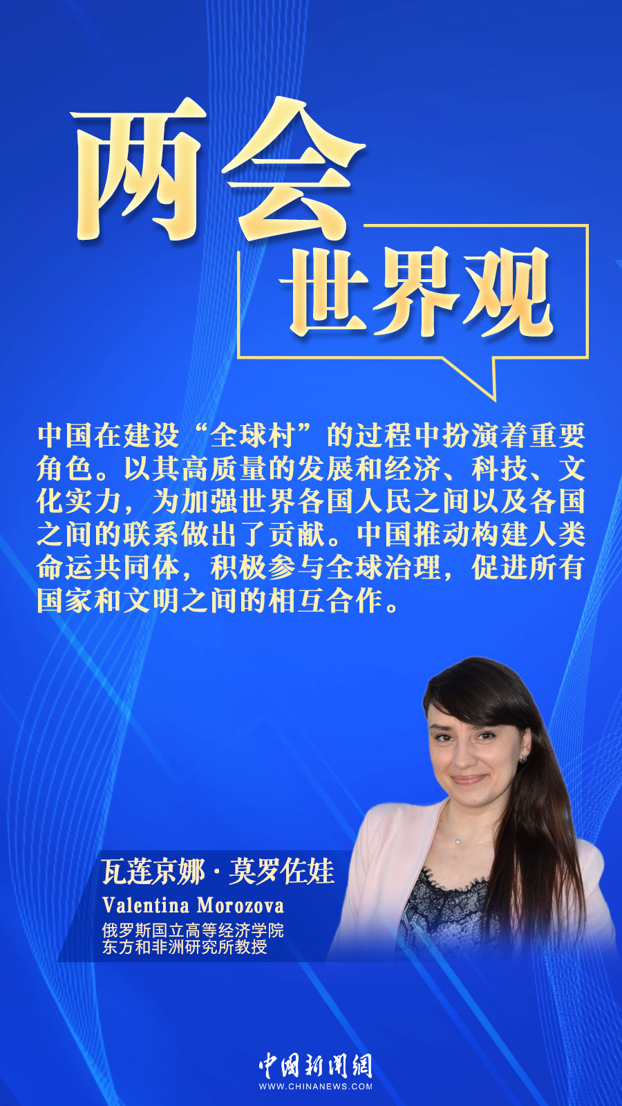 中新網(wǎng)3月16日電(張乃月)近日,俄羅斯國立高等經(jīng)濟學院東方和非洲研究所教授莫羅佐娃接受中新網(wǎng)采訪時,肯定了中國建設(shè)性地參與全球治理的態(tài)度,關(guān)注中國以自身高質(zhì)量發(fā)展和經(jīng)濟、科技、文化實力,為加強世界各國人民、各國間的聯(lián)系做出貢獻。