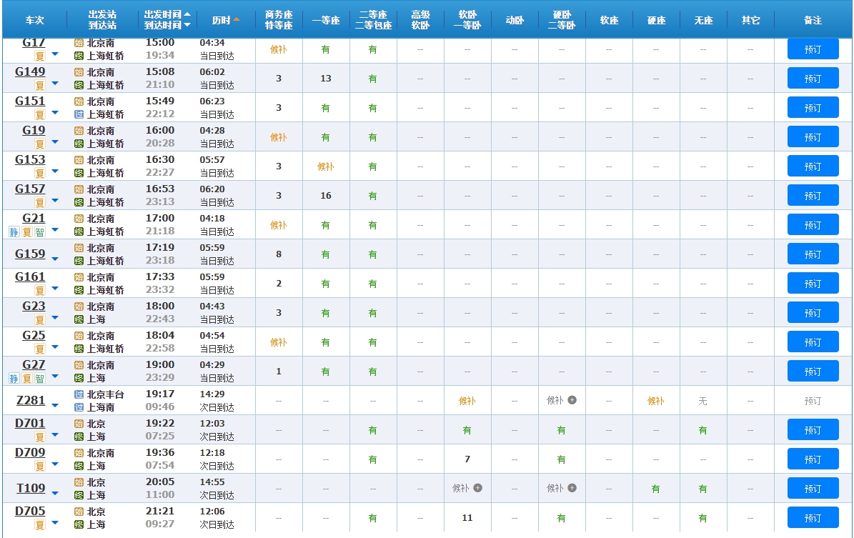 以北京開(kāi)往上海、杭州、成都等方向的列車(chē)為例,3月31日、4月1日車(chē)次多數(shù)余票充足,僅個(gè)別車(chē)次需要候補(bǔ)購(gòu)票。